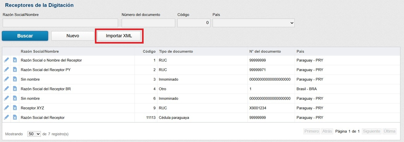 Para importar los receptores, será necesario acceder a la pantalla “Receptores de la Digitación” y hacer clic en la nueva opción “Importar XML”, ubicada al lado derecho del botón “Nuevo”.